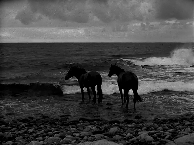 イングマール・ベルイマン監督によるスウェーデン映画『第七の封印』(1957年)。騎士アントーニウスが十字軍の遠征から帰国する。祖国は疫病によって荒廃していた。アントーニウスは自らの命を賭して死神とチェスで勝負しながら、自分の城を目ざす。原題: Det sjunde inseglet、英題: The Seventh Seal。写真は死神(ベント・エケロート)。